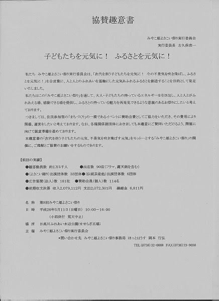 みやこ姫よさこい祭りは皆さんから頂いた協賛・賛助金で行われています。